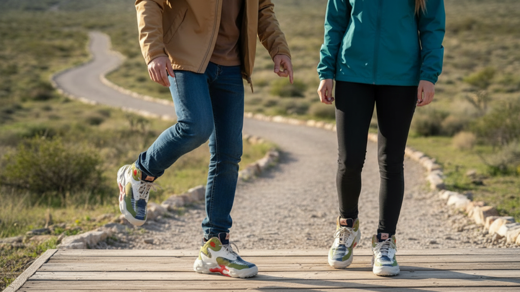 Below are five travel-friendly options (women’s fashion-forward walkers + a more rugged men’s option), with quick guidance on who each fits best.